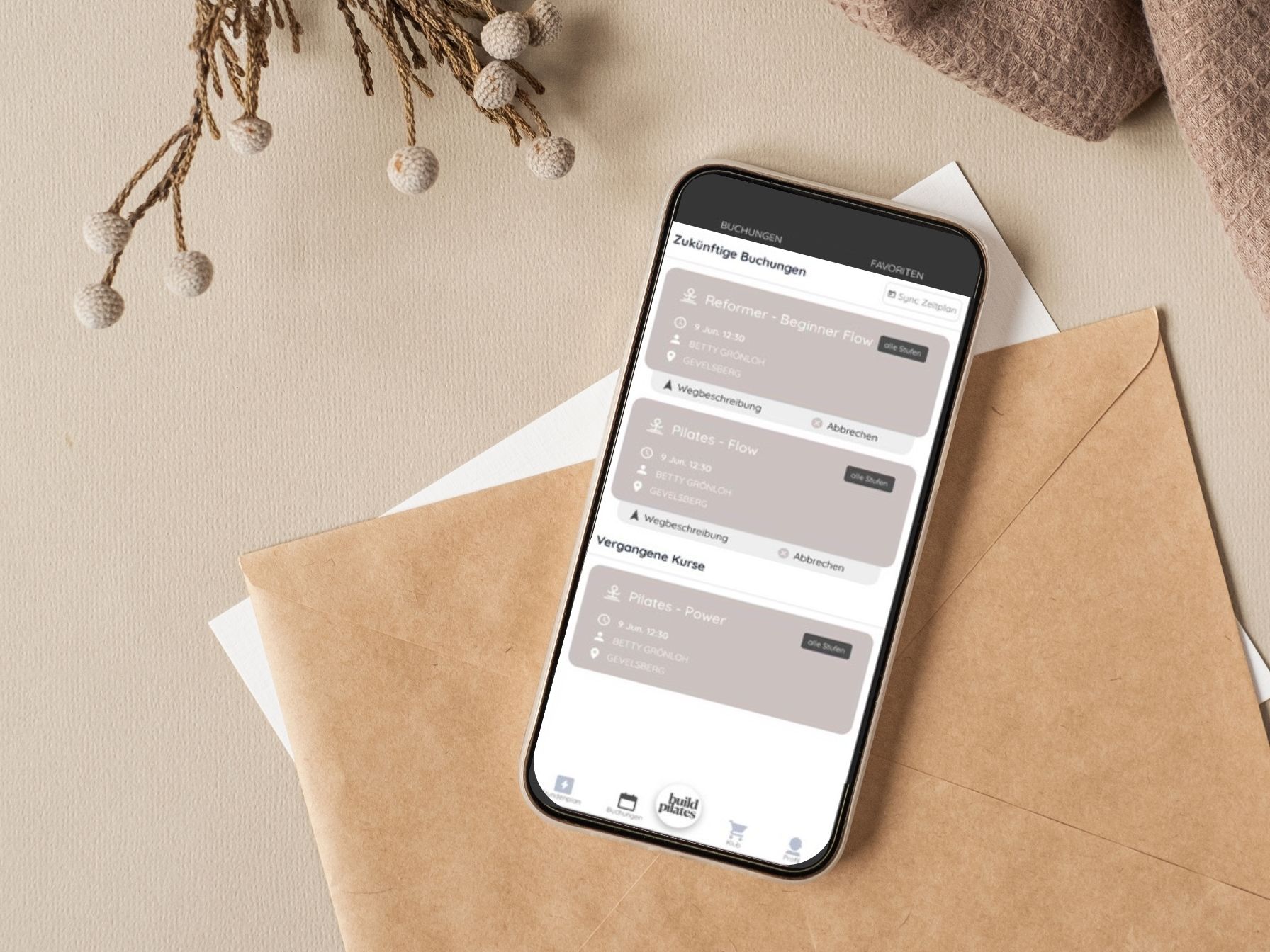 Du kannst dir außerdem unsere build pilates App für IOS herunterladen und ganz entspannt hierüber deine Kurse buchen. Die Android App folgt!